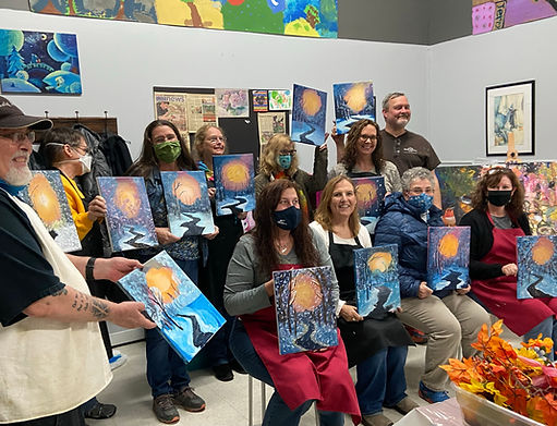 A blank canvas and a casual atmosphere of a working art studio. Just bring your friends, favorite beverages and snacks, and then simply sit back and “wine down” as you paint with the warm help of one of our instructors. You don’t need to be a trained artist or have any painting experience whatsoever – it’s all about fun time and making memories. We provide easy to follow step-by-step instructions and painting supplies. Let’s make some fun (not fine) art!